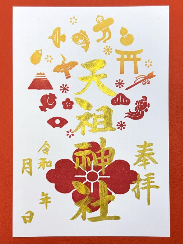 「天祖神社」「稲荷社」「新年宝尽くし御朱印」「お正月特別御朱印」を頒布致します。天祖神社、稲荷社、宝尽くしの御朱印は御朱印帳に墨書致します※書置き日・休務日を除く。